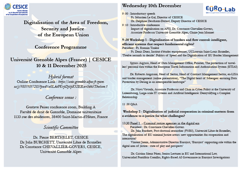 Les vidéos du colloque "Digitalisation of the Area of Freedom, Security and Justice of the EU" sont disponibles ici