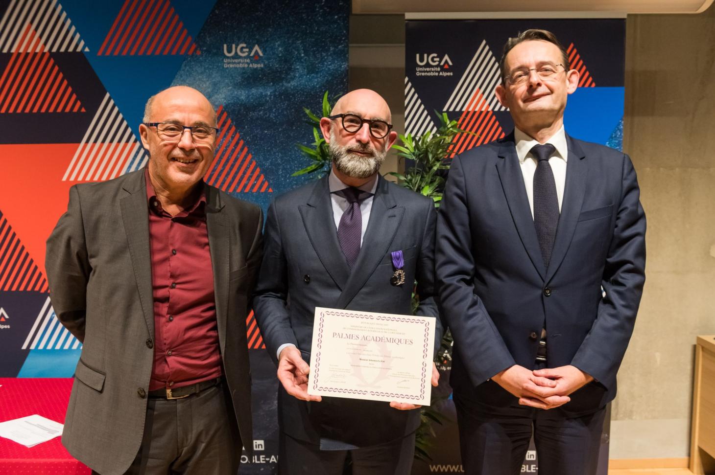 Jeudi 29 janvier, l'UGA honorait ses personnels lors de la remise des décorations pour les personnes nommées ou promues dans l'ordre des Palmes académiques. Onze personnels étaient promus au grade de chevalier ou d'officier. Toutes les félicitations de la part du CESICE au Professeur Sébastien Le Gal pour sa nomination au grade de chevalier des Palmes académiques.